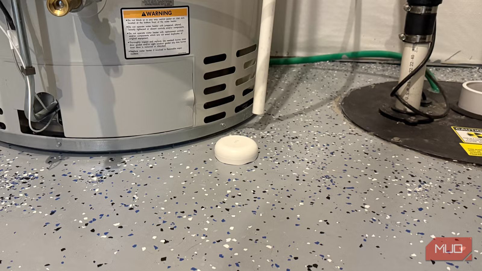 Ideally, you should use a contact sensor that is specifically a water leak sensor for a place where there’s moisture, like your kitchen pipes, laundry area, or sewer drain. These are usually two pieces with a main unit you plug in and a second sensor you place in a spot where water will pool if there’s a leak. Using this can help you nip an issue in the bud before a few drops becomes a huge swimming pool in your basement, kitchen, or bathroom.