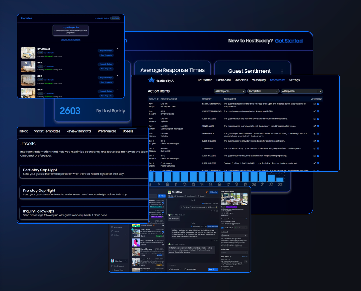 Created by hosts, for hosts, HostBuddy AI is the leading messaging automation software in the short-term rental industry. With the ability to communicate with your guests directly through your property management system, HostBuddy AI uses information about your properties to provide quality support to your guests. Host with ease and let HostBuddy handle guest questions, troubleshooting, and issue escalation on your behalf.