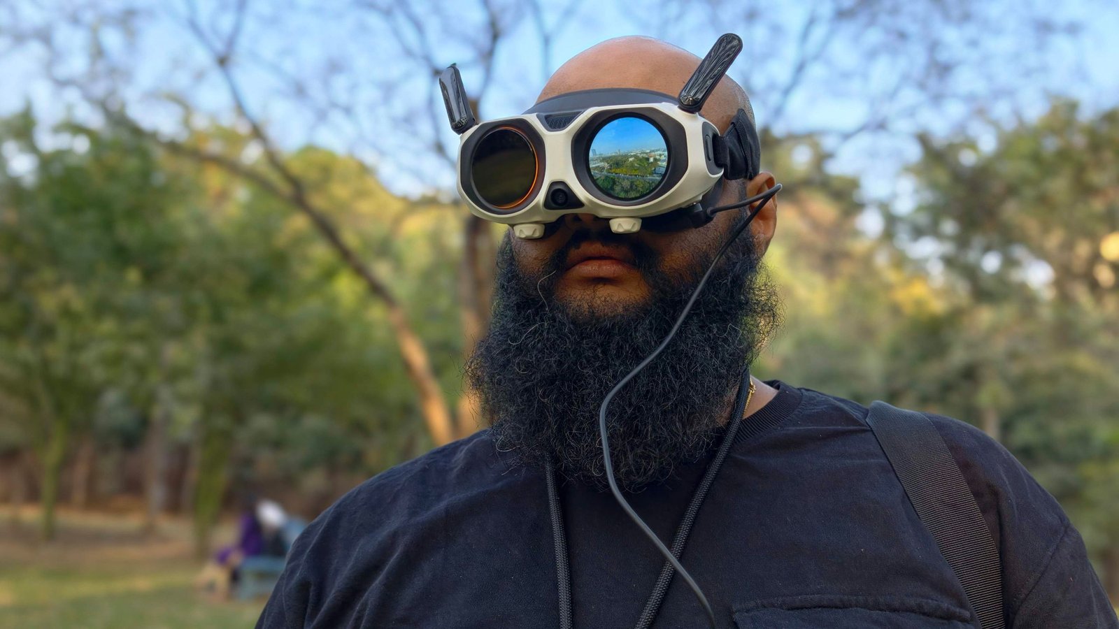 The Antigravity Vision goggles have 1-inch Micro-OLED panels with 2560 x 2560 resolution in each eye, and it has extensive adjustability — a must-have in a product of this nature. I was able to adjust the lenses relatively easily, and the goggles are light enough that I didn’t see any issues. The goggles connect via USB-C to a battery (it’s included in the bundle), and it lasts just under two hours before you need to charge it.