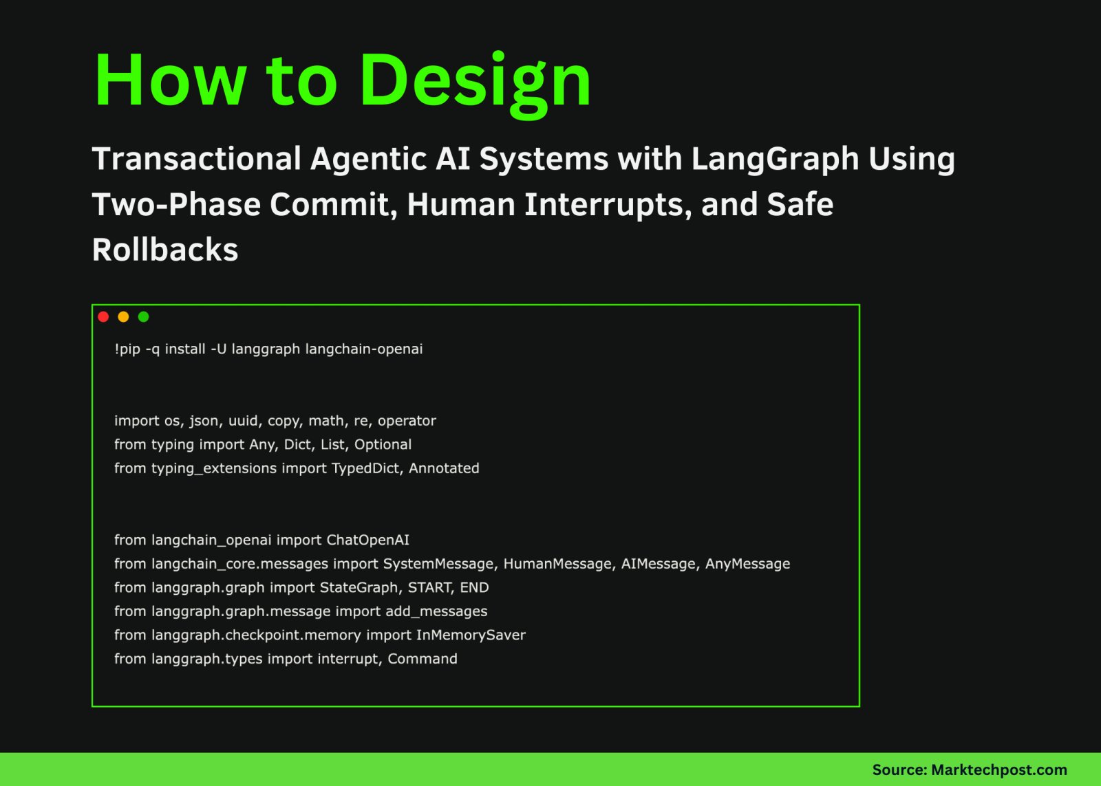 In this tutorial, we implement an agentic AI pattern using LangGraph that treats reasoning and action as a transactional workflow rather than a single-shot decision. We model a two-phase commit system in which an agent stages reversible changes, validates strict invariants, pauses for human approval via graph interrupts, and commits or rolls back only then. With this, we demonstrate how agentic systems can be designed with safety, auditability, and controllability at their core, moving beyond reactive chat agents toward structured, governance-aware AI workflows that run reliably in Google Colab using OpenAI models. Check out the Full Codes here.