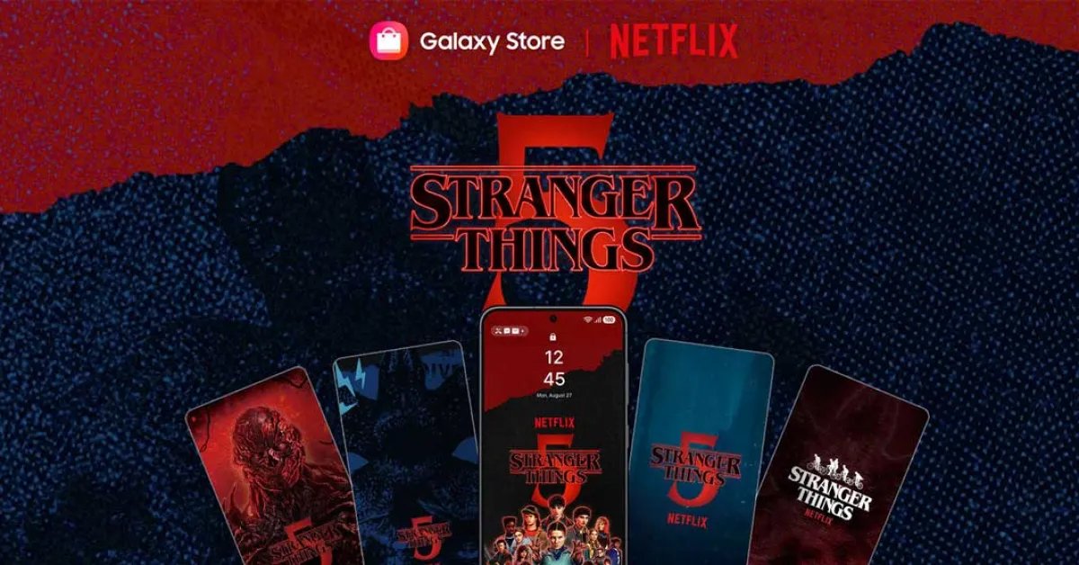 The promotional Netflix partnership brings a new Stranger Things-inspired theme and set of wallpapers to Galaxy phones. Samsung details five different wallpapers that users can choose from, inspired by characters and scenes from the show.