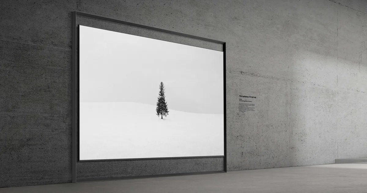 The original concept put the TVs in a tilting frame. For the new 130-inch model, Samsung is embedding the entire unit within a boxy frame, though the angled view look is still available. “Inspired by the frame of a grand architectural window, the ultra-large screen appears to float within its borders, transforming the TV into an artistic centerpiece that shapes the room,” says the company.