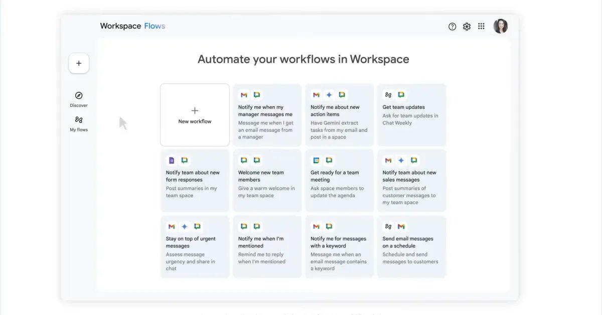 Workspace Flows —flows.workspace.google.com — is a tool that can automate “multi-step processes using AI that can actually research, analyze, and generate content for you.” The idea is to “automate your everyday, routine tasks across Google Workspace services with the help of Gemini.”
