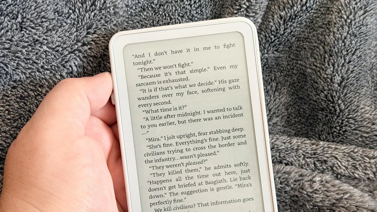 I’ve sung the praises of the TCL Nxtpaper 11 tablet for quite some time, and the only drawback I’ve found is that it’s simply too large and heavy to read comfortably in bed when I hold it up. The Kindle is much smaller, but the more compact DuRobo Krono is lighter than all of them, weighing 6.13 ounces — about the same as my husband’s iPhone 13.